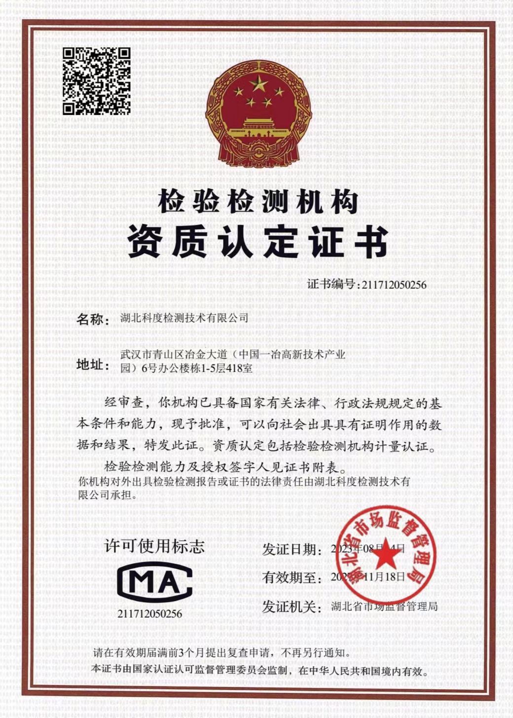 湖北科度檢測(cè)技術(shù)有限公司是一家專業(yè)從事環(huán)境類及相關(guān)領(lǐng)域檢測(cè)的第三方檢測(cè)機(jī)構(gòu),公司已通過湖北省市場監(jiān)督管理局CMA計(jì)量認(rèn)證,可以面向社會(huì)出具權(quán)威CMA檢測(cè)報(bào)告。 我公司實(shí)驗(yàn)室嚴(yán)格按照國家標(biāo)準(zhǔn)建設(shè),擁有一大批國內(nèi)外先進(jìn)儀器設(shè)備及現(xiàn)代化配套設(shè)施,并有經(jīng)驗(yàn)豐富的中高級(jí)專業(yè)技術(shù)人員和嚴(yán)格的實(shí)驗(yàn)室質(zhì)量保證體系為項(xiàng)目運(yùn)作提供強(qiáng)力支撐。 作為第三方檢測(cè)機(jī)構(gòu),公司始終以高度的社會(huì)責(zé)任感經(jīng)營企業(yè),以“公正、嚴(yán)謹(jǐn)、高效”為宗旨,依托專業(yè)的技術(shù)實(shí)力為客戶提供專業(yè)優(yōu)質(zhì)檢測(cè)服務(wù),受到政府、企業(yè)和社會(huì)各界的廣泛關(guān)注和認(rèn)可。